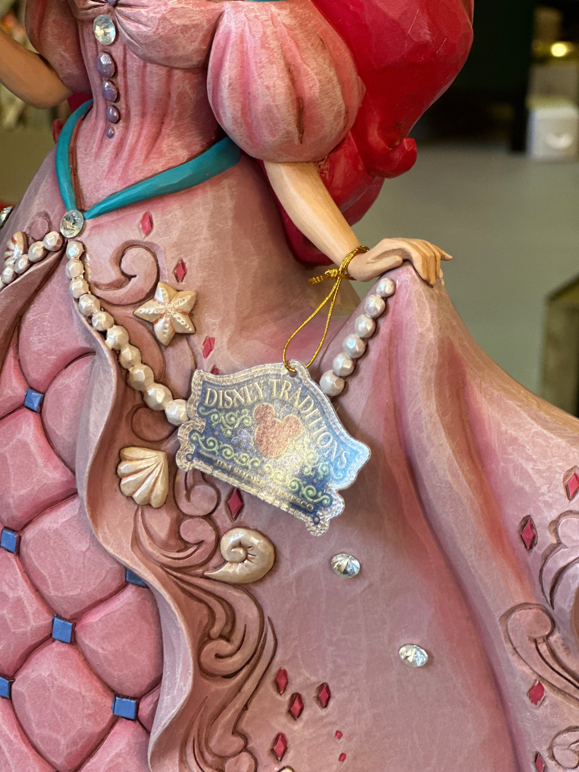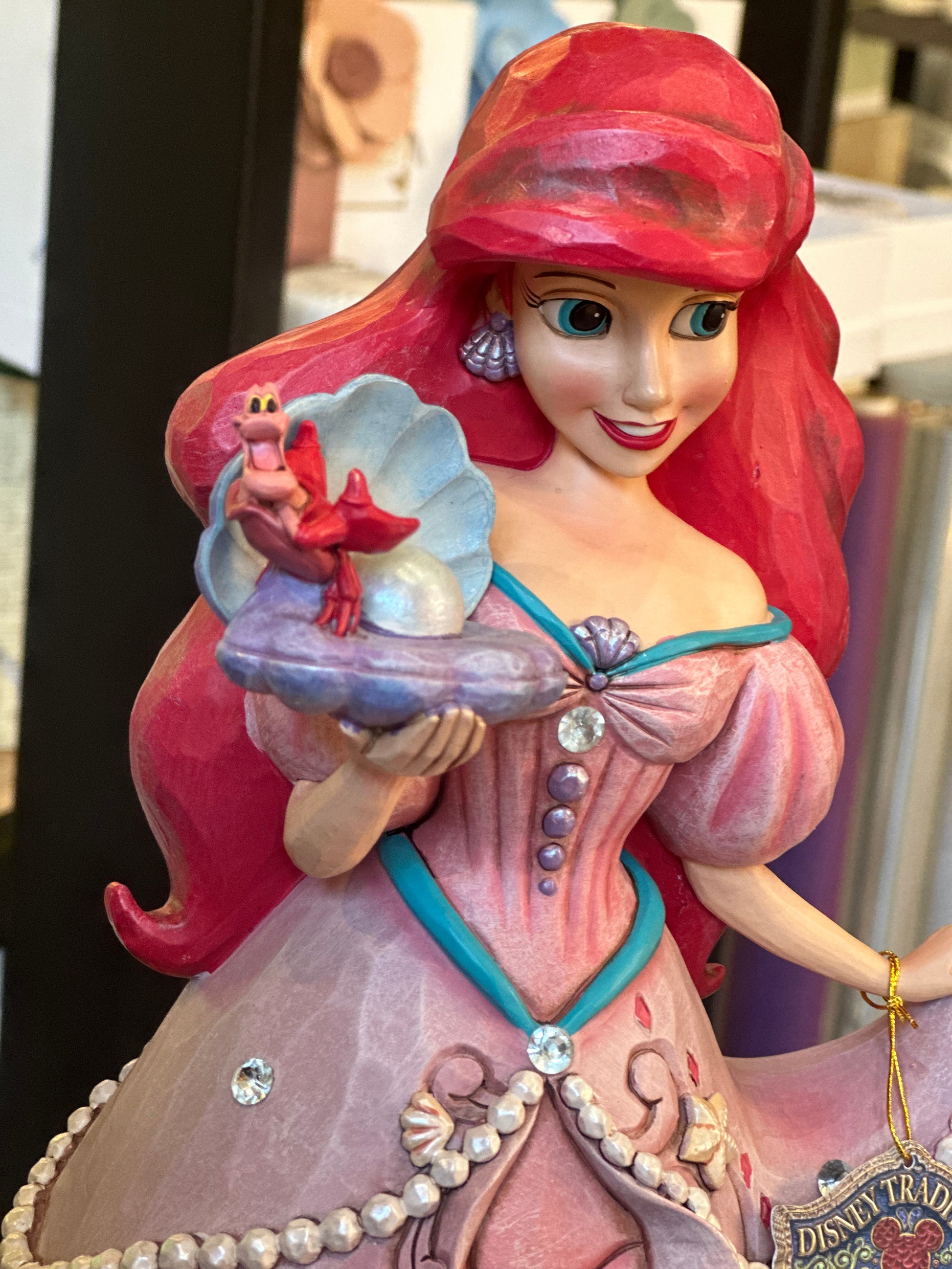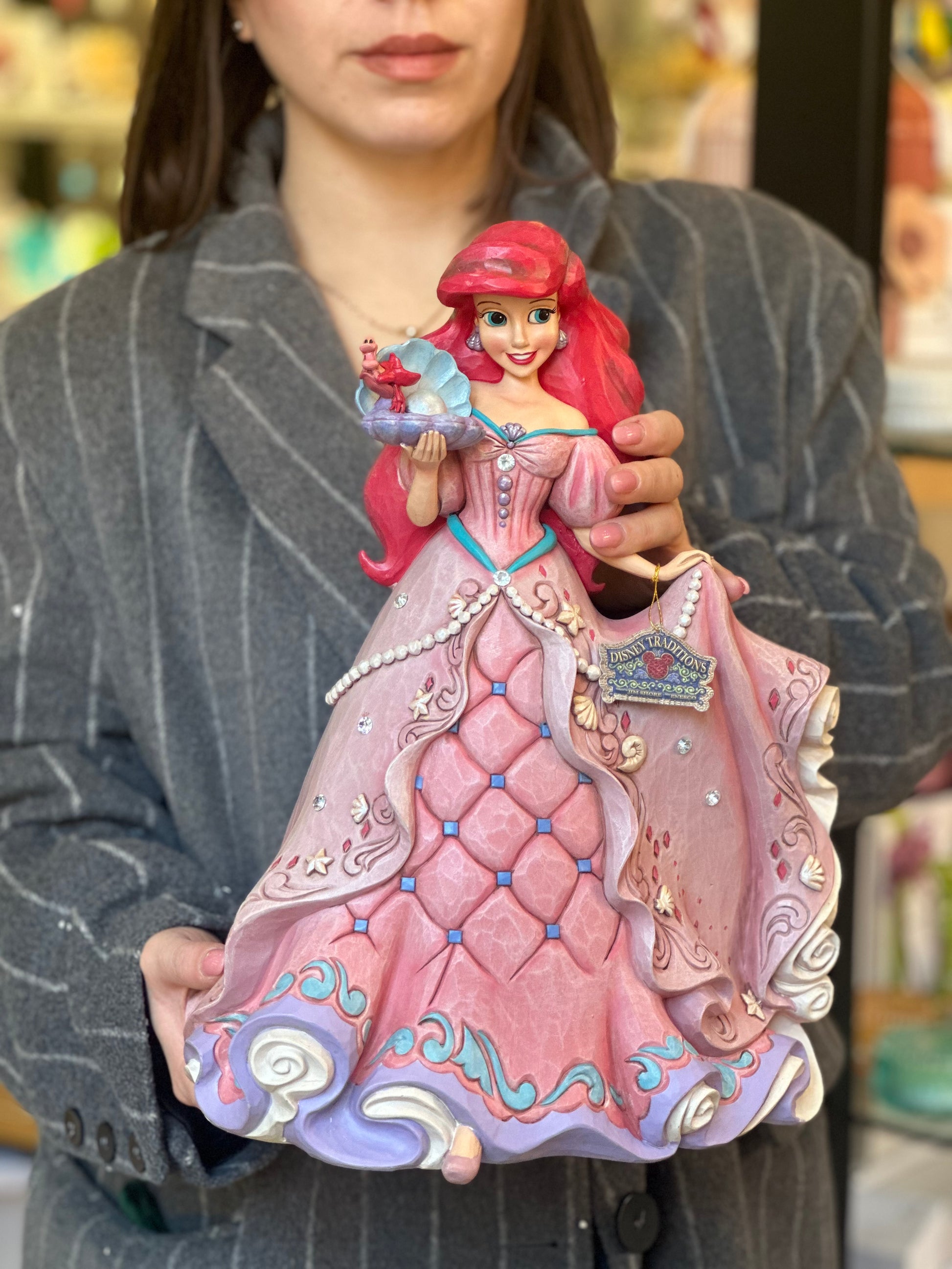 Figura di Ariel della serie Deluxe Princess. Grazie alla magia di Ursula, la misteriosa strega del mare, la sirenetta Ariel scambia la sua voce con gambe umane per conquistare il cuore di Eric. La principessa indossa uno splendido abito decorato con conchiglie e gioielli e tiene in mano un'ostrica con una perla. La figura definitiva per ogni appassionato Disney. Progettato dal pluripremiato artista e scultore Jim Shore per la collezione Disney Traditions. Queste figure non sono giocattoli per bambini. Destinato solo agli adulti.